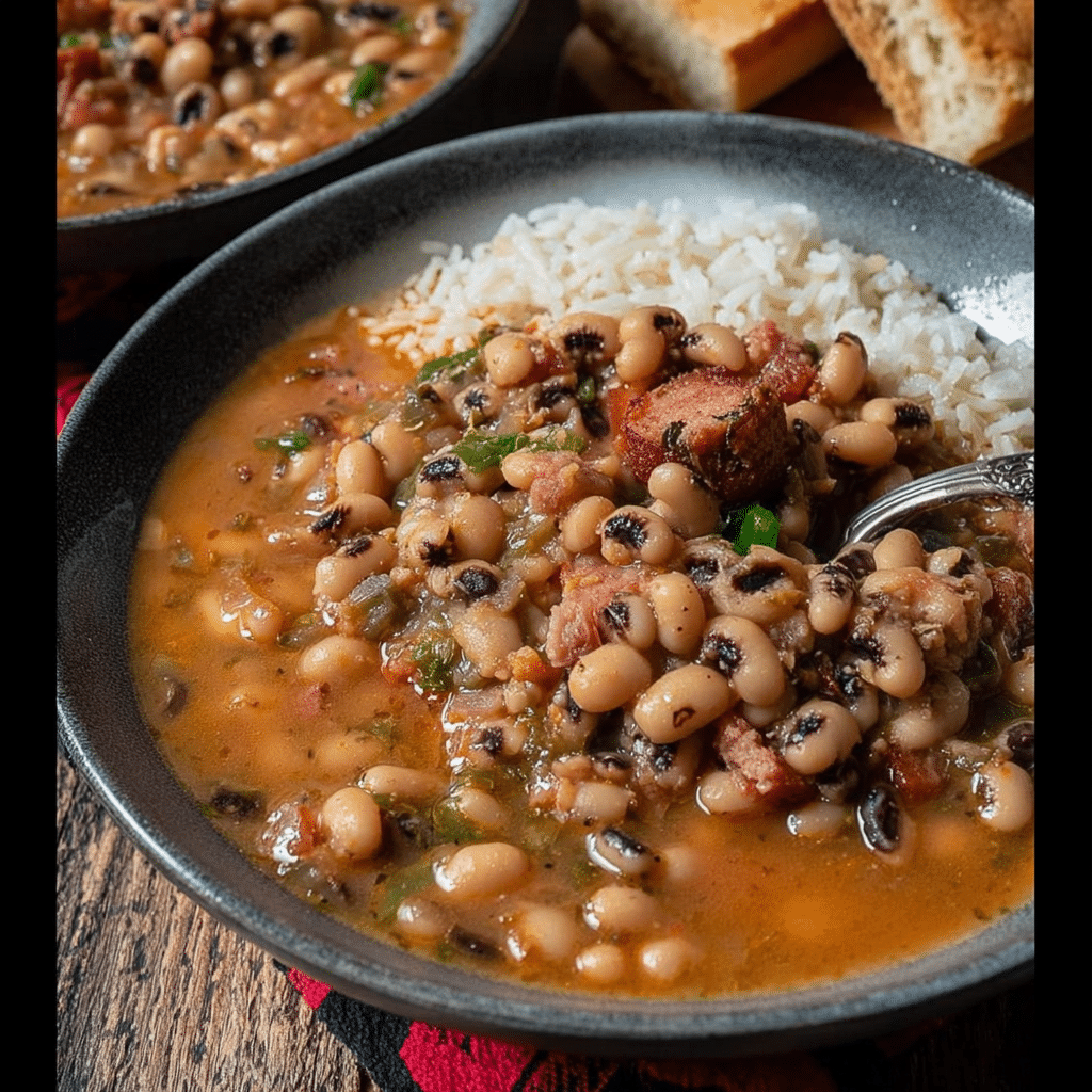 A classic Southern dish with black-eyed peas, smoky bacon, and savory sausage, perfect for bringing warmth and comfort.