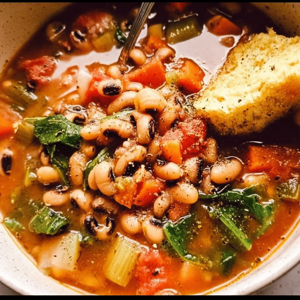 A warm and hearty soup packed with nutrients, featuring smoky flavors and healthy black eyed peas.